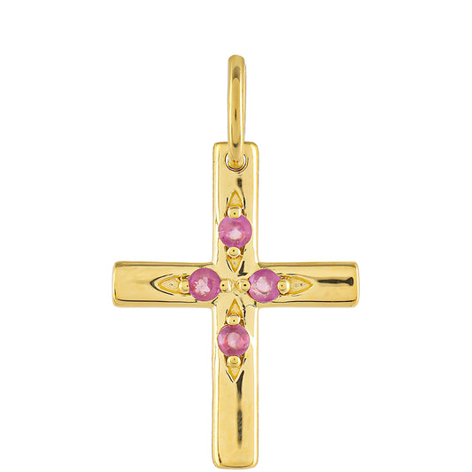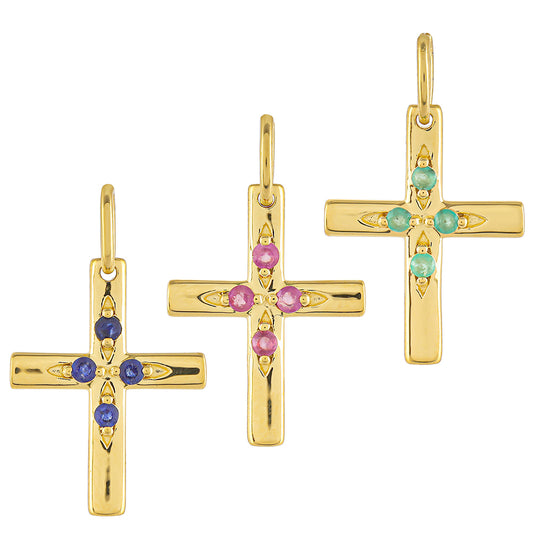 Cruz Conjunto de Prata com Banho de Ouro com Rubi da Tailândia e Esmeralda do Brasil ( Pendente ) Contraste: Cabeca de Veado (800)