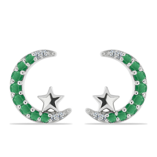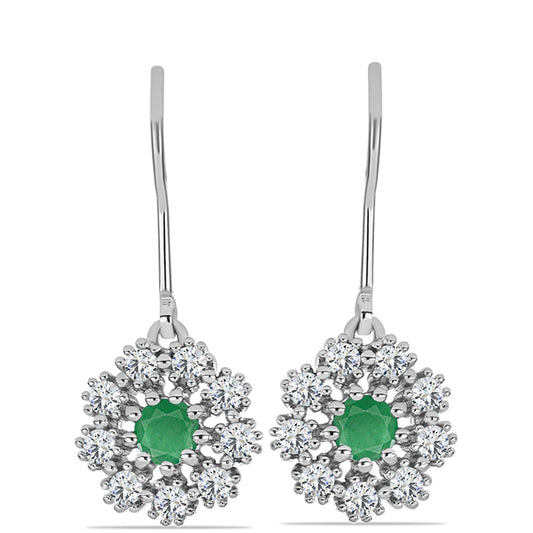 Brincos de Prata com Esmeralda do Brasil e Topázio Branco