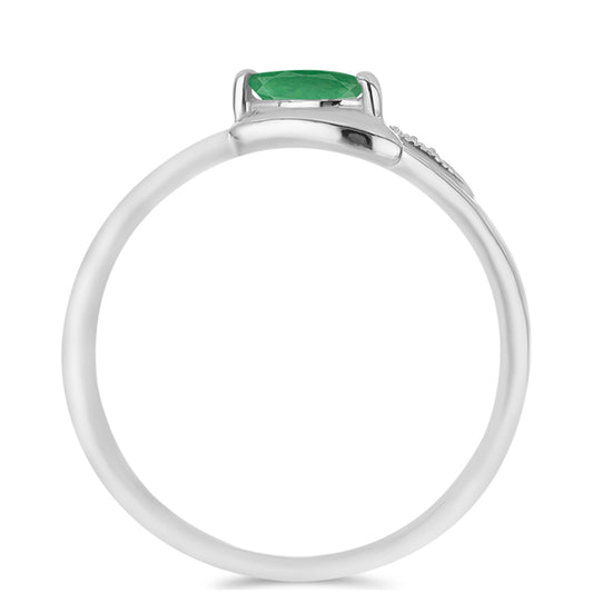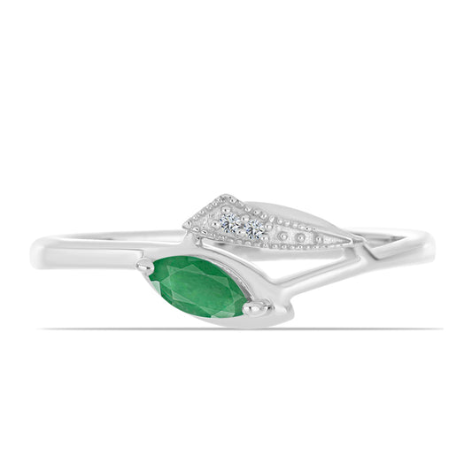 Anel de Prata com Esmeralda do Brasil e Zircão Branco Contraste: Cabeca de Veado (800)