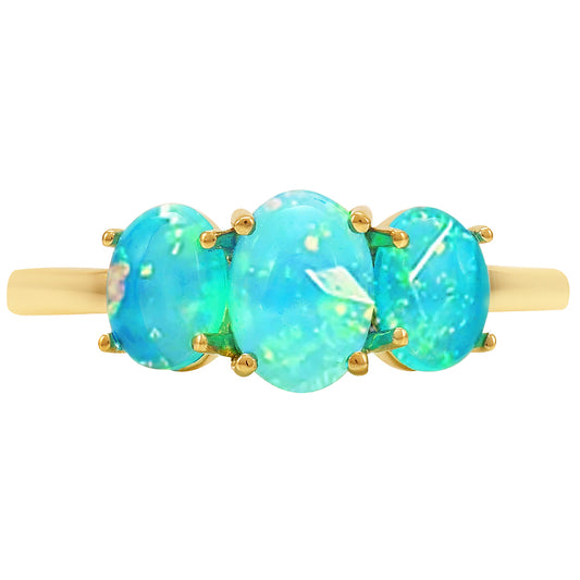 Anel de Prata com Banho de Ouro com Opala Azul Paraib da Etiópia