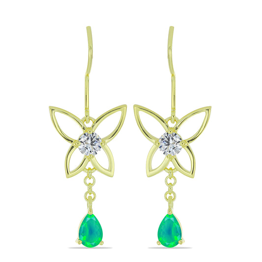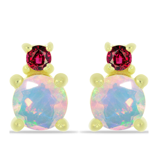 Brincos de Prata com Banho de Ouro com Opala Fogo Americano Contraste: Cabeca de Veado (800)