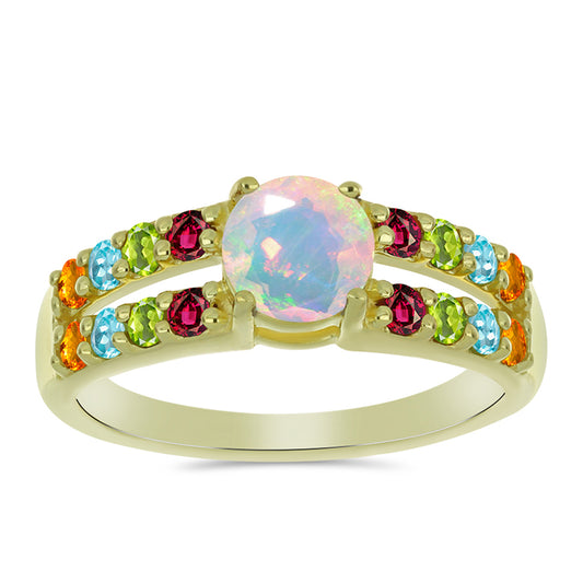 Anel de Prata com Banho de Ouro com Opala da Etiópia de Lega Dembi
