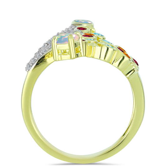 Anel de Prata com Banho de Ouro com Opala Fogo