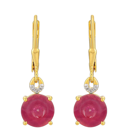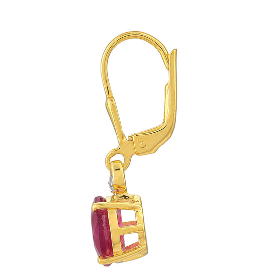 Brincos de Prata com Banho de Ouro com Rubi da Tailândia
