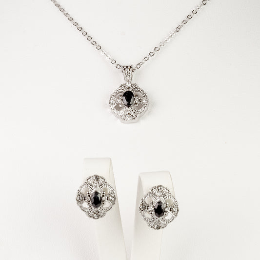 Brincos de Prata com Safira da Tailândia e Quartzo Cristal