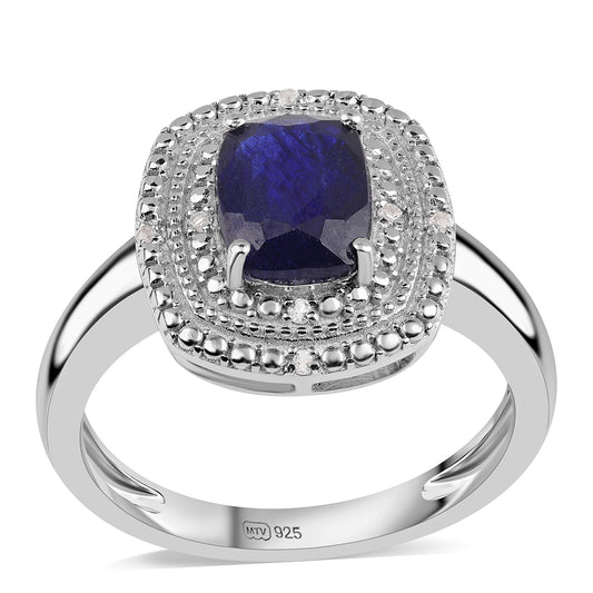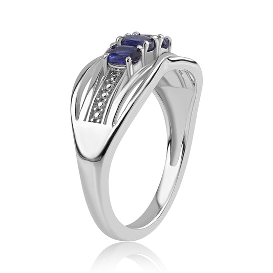 Anel de Prata com Safira Azul Australiana e Topázio Branco