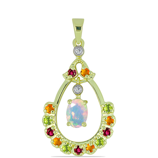 Pendente de Prata com Banho de Ouro com Turmalina Verde e Zircão Natural