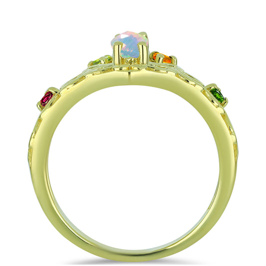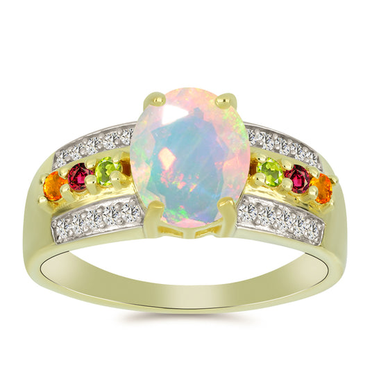 Anel de Prata com Banho de Ouro com Opala Welo e Turmalina Chakra
