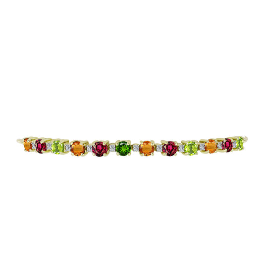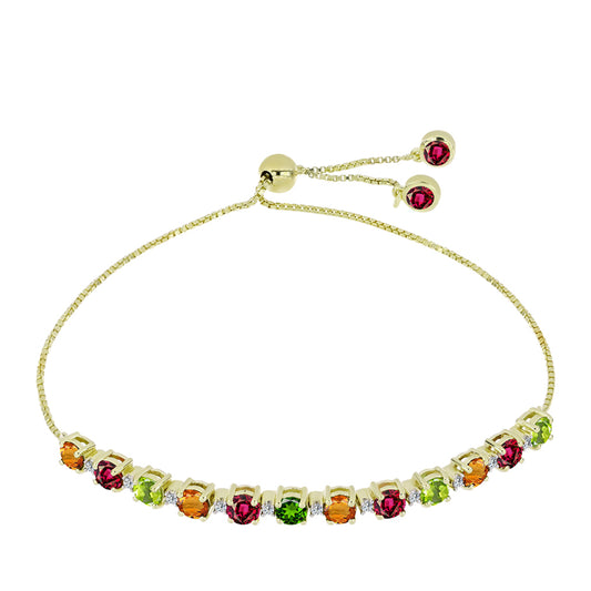 Pulseira de Prata com Banho de Ouro com Turmalina Arco-íris de Pelmadulla e Topázio Branco Contraste: Cabeca de Veado (800)