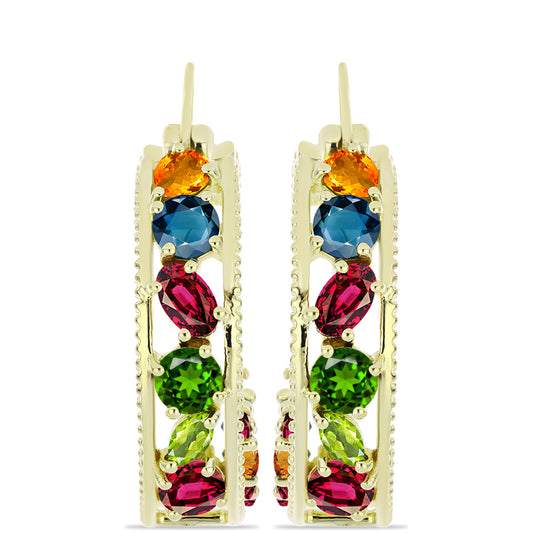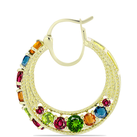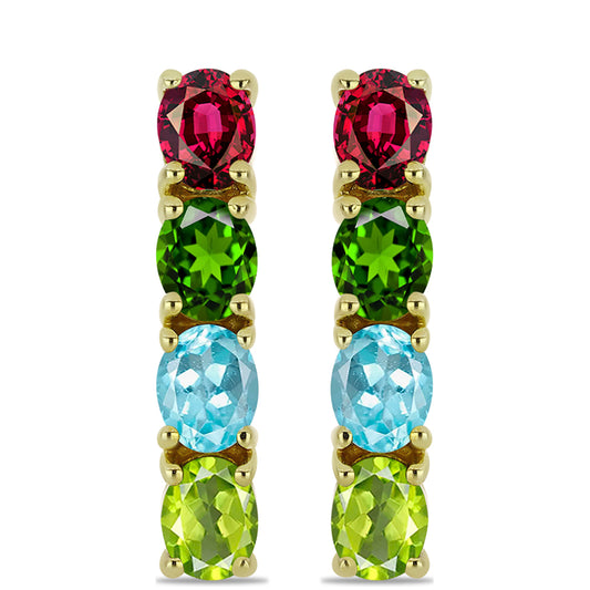 Brincos de Prata com Banho de Ouro com Turmalina Verde e Zircão Natural
