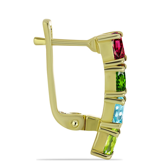 Brincos de Prata com Banho de Ouro com Turmalina Verde