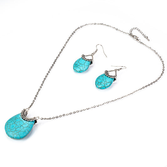 Conjunto de Liga de Ouro com Turquesa ( Colar+Brincos )