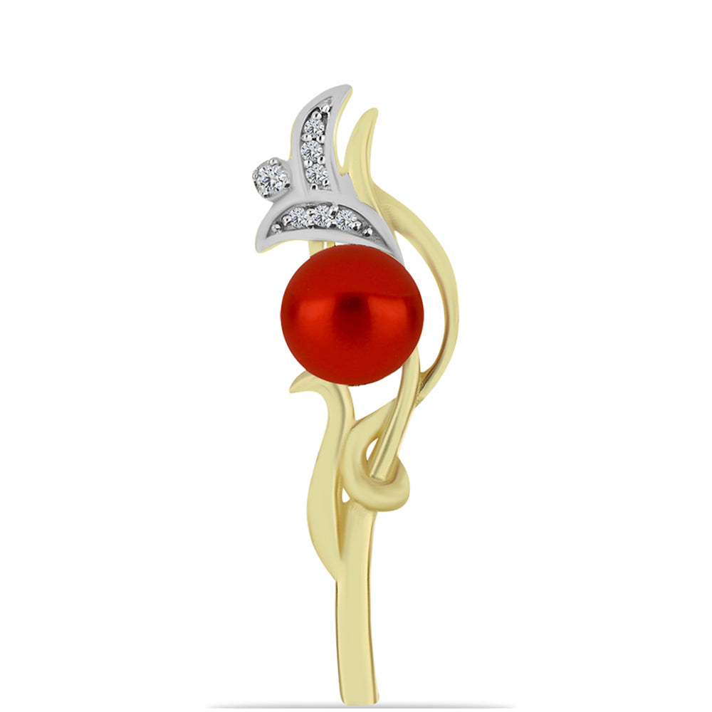 Alfinete de Prata com Banho de Ouro com Pérola Vermelha de Água Doce e Topázio Branco