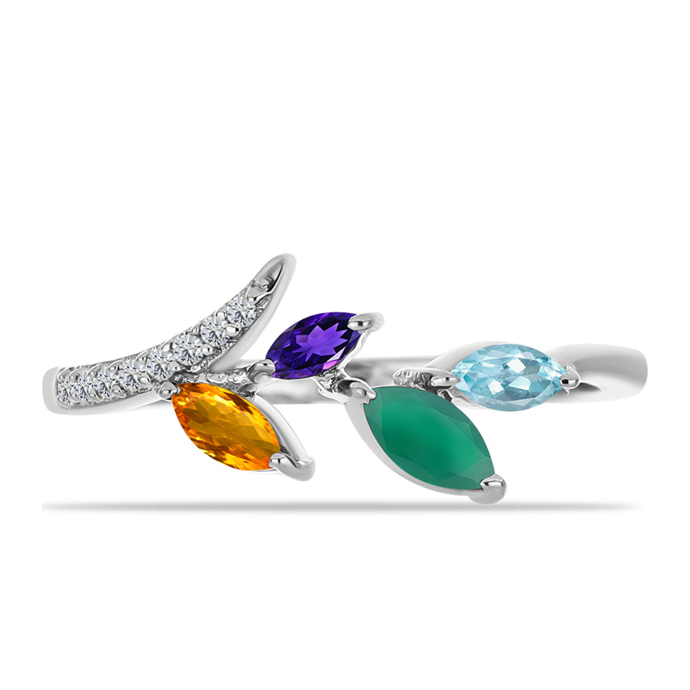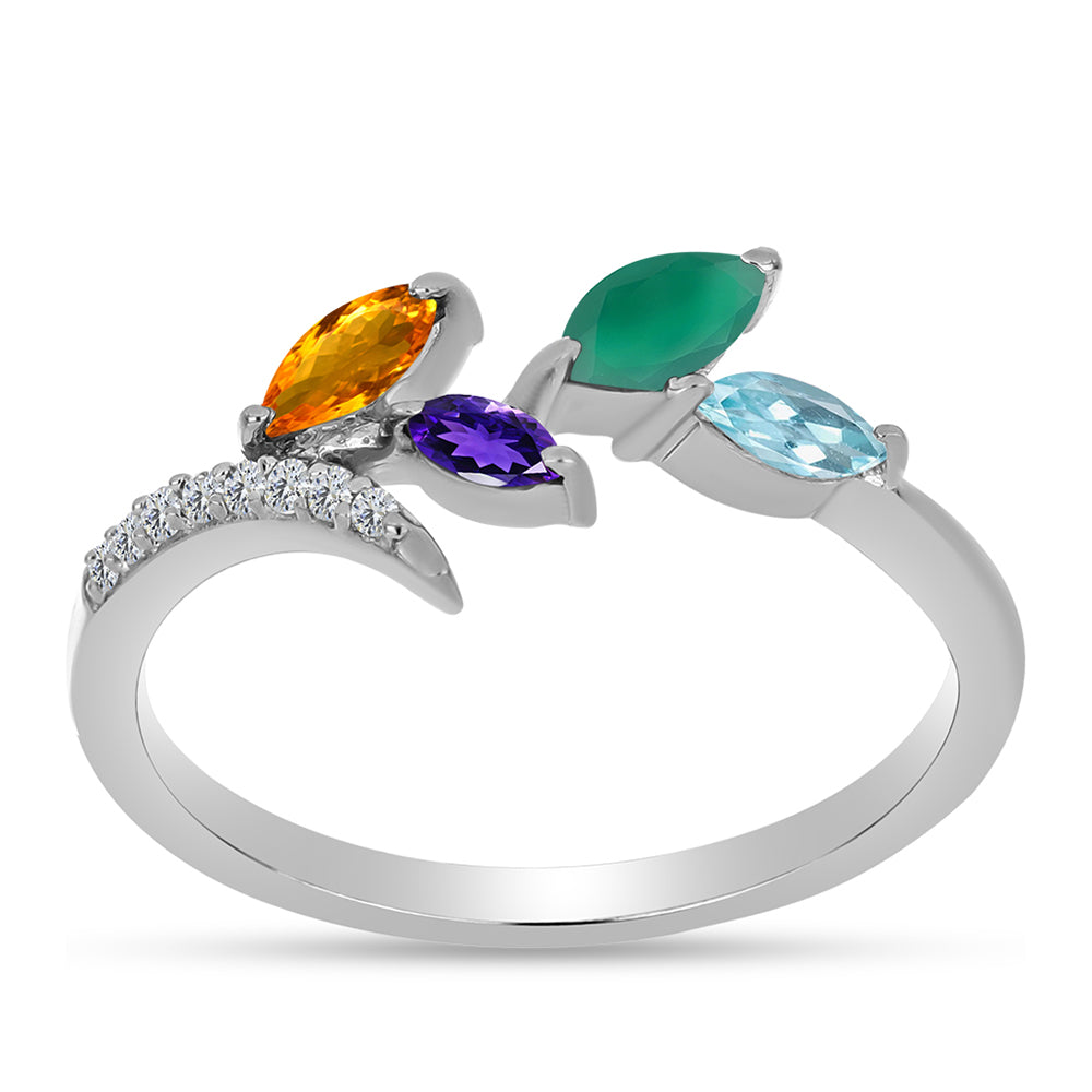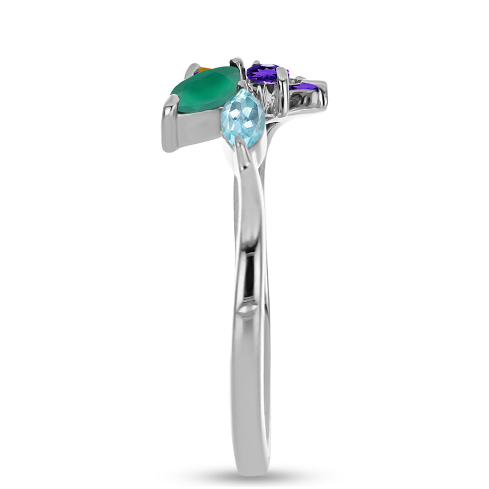 Anel de Prata com Ametista de Marrocos e Ágata Verde