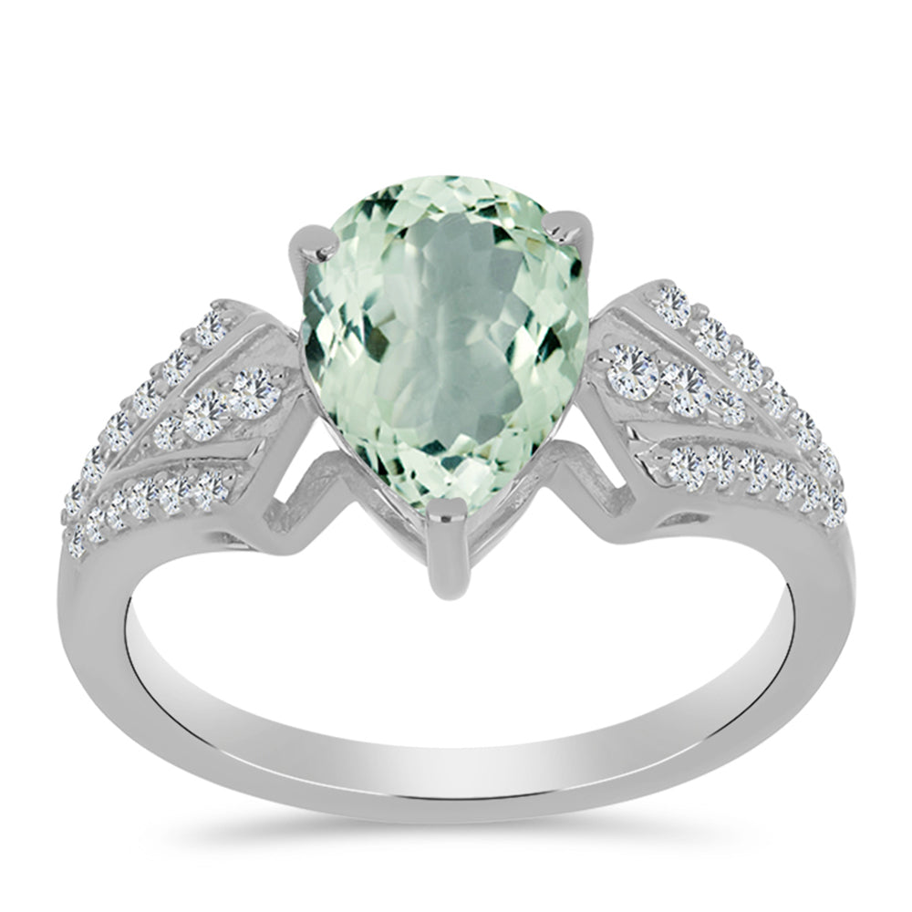 Anel de Prata com Ametista Verde e Topázio Branco / carat: 1.92 / peso apróx. 2.93 gr. CÓDIGO: Y59435 Tamanho da jóia: 10.60 mm x 21.60 mm