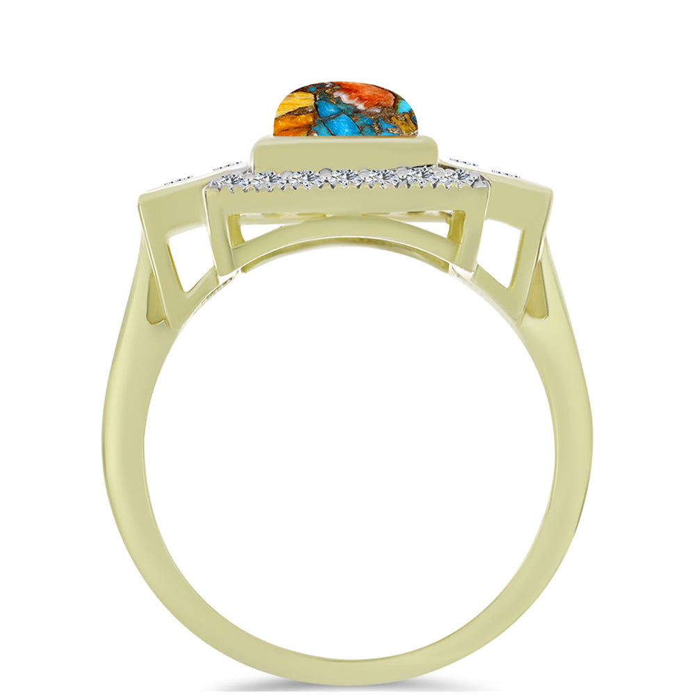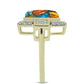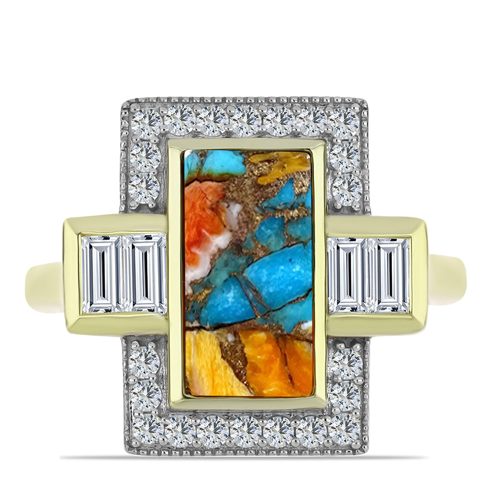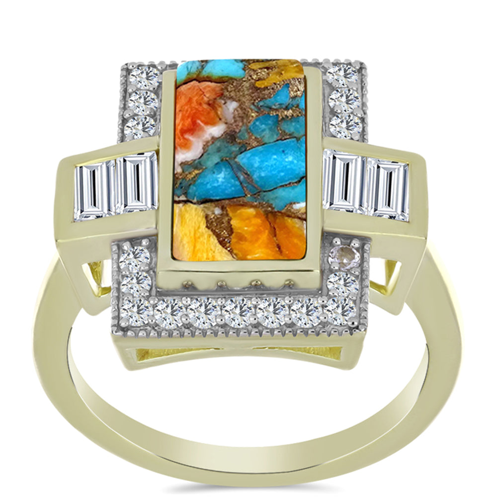 Anel de Prata com Banho de Ouro com Ostra Turquesa e Topázio Branco Contraste: Cabeca de Veado (800)