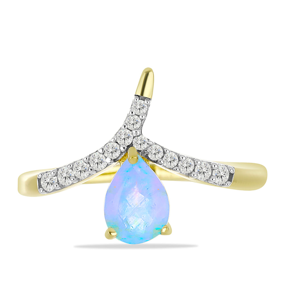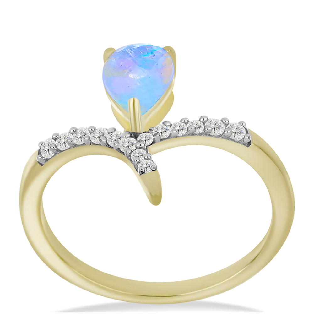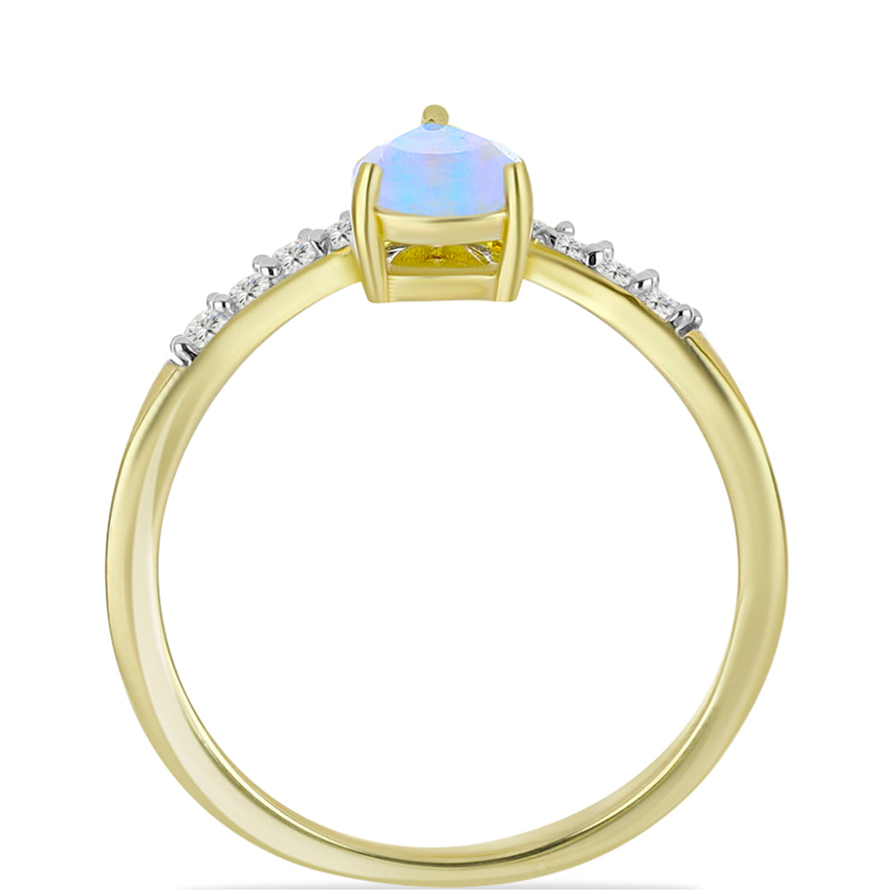 Anel de Prata com Banho de Ouro com Pedra da Lua Arco-íris e Topázio Branco / carat: 0.92 / peso apróx. 2 gr. CÓDIGO: Y58007 Tamanho da jóia: 13.50 mm x 22.00 mm