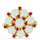 Anel de Prata com Banho de Ouro com Pérola Branca de Água Doce e Rubi de Madagáscar Contraste: Cabeca de Veado (800)
