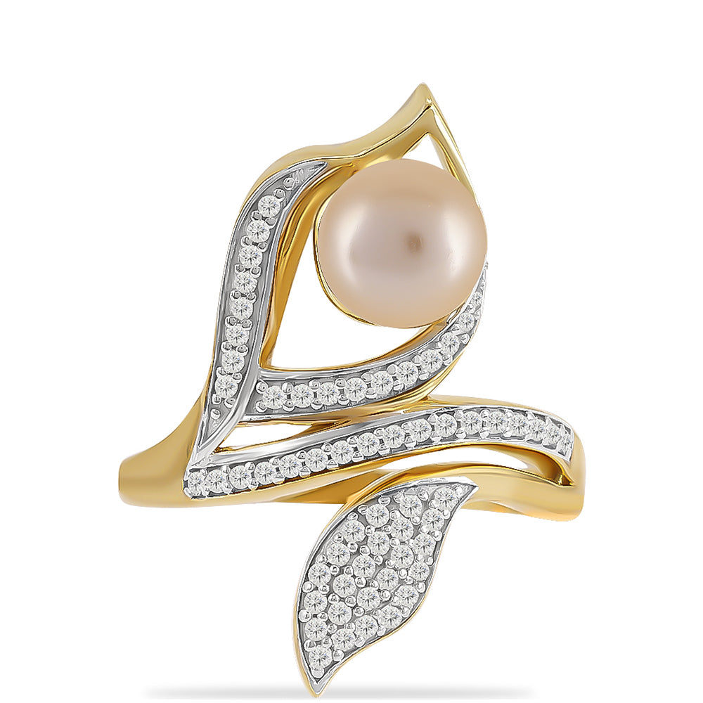 Anel de Prata com Banho de Ouro com Pérola de Água Doce Dourada e Topázio Branco / carat: 2.95 / peso apróx. 6.34 gr. CÓDIGO: Y58102 Tamanho da jóia: 32.80 mm x 23.40 mm Contraste: Cabeca de Veado (800)
