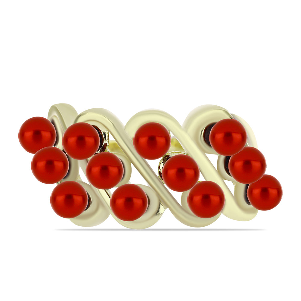Anel de Prata com Banho de Ouro com Pérola Vermelha de Água Doce Contraste: Cabeca de Veado (800)