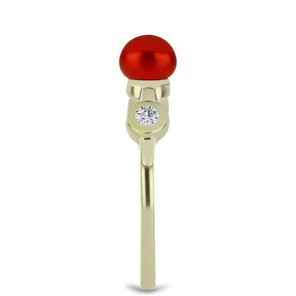 Anel de Prata com Banho de Ouro com Pérola Vermelha de Água Doce e Topázio Branco