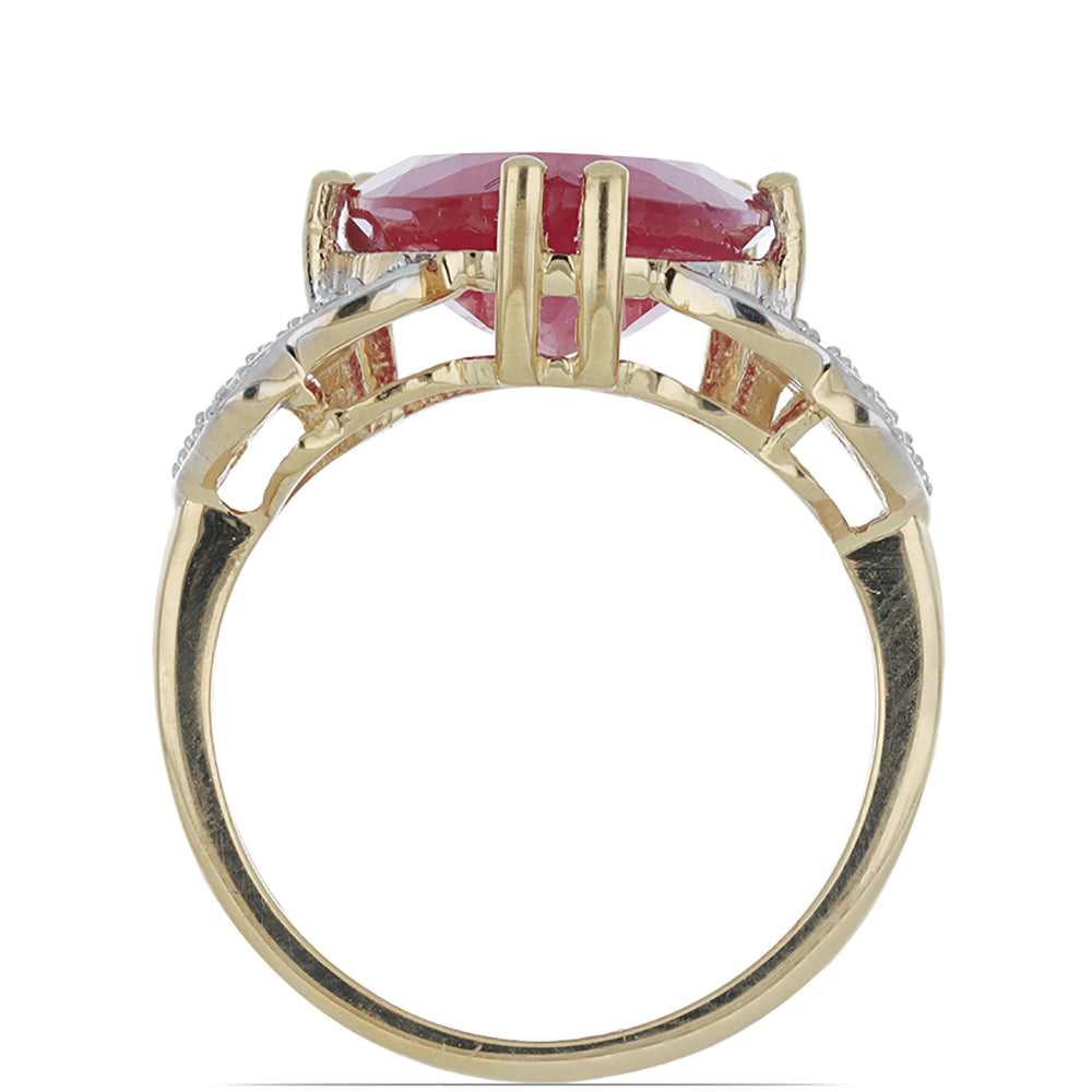 Anel de Prata com Banho de Ouro com Rubi de Madagáscar e Topázio Branco Contraste: Cabeca de Veado (800)