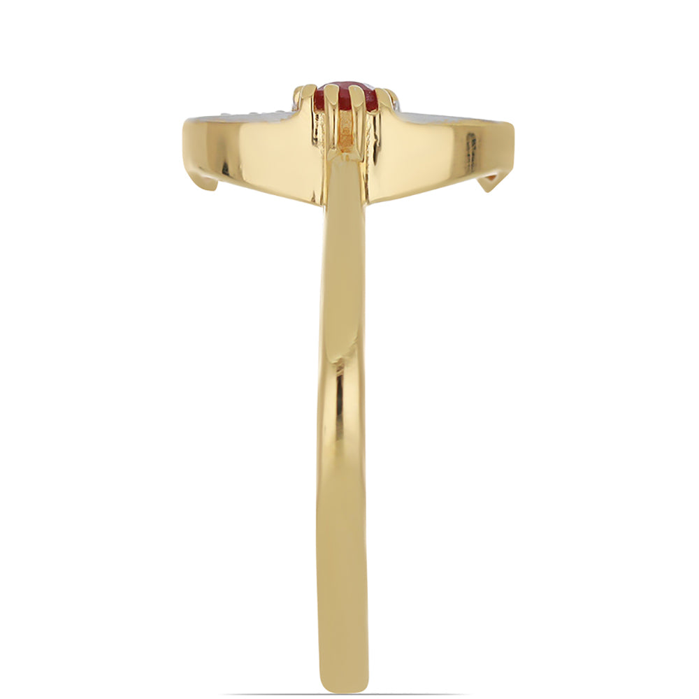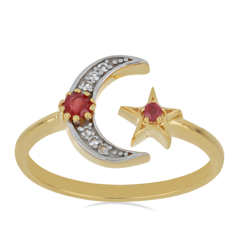 Anel de Prata com Banho de Ouro com Rubi de Madagáscar e Topázio Branco