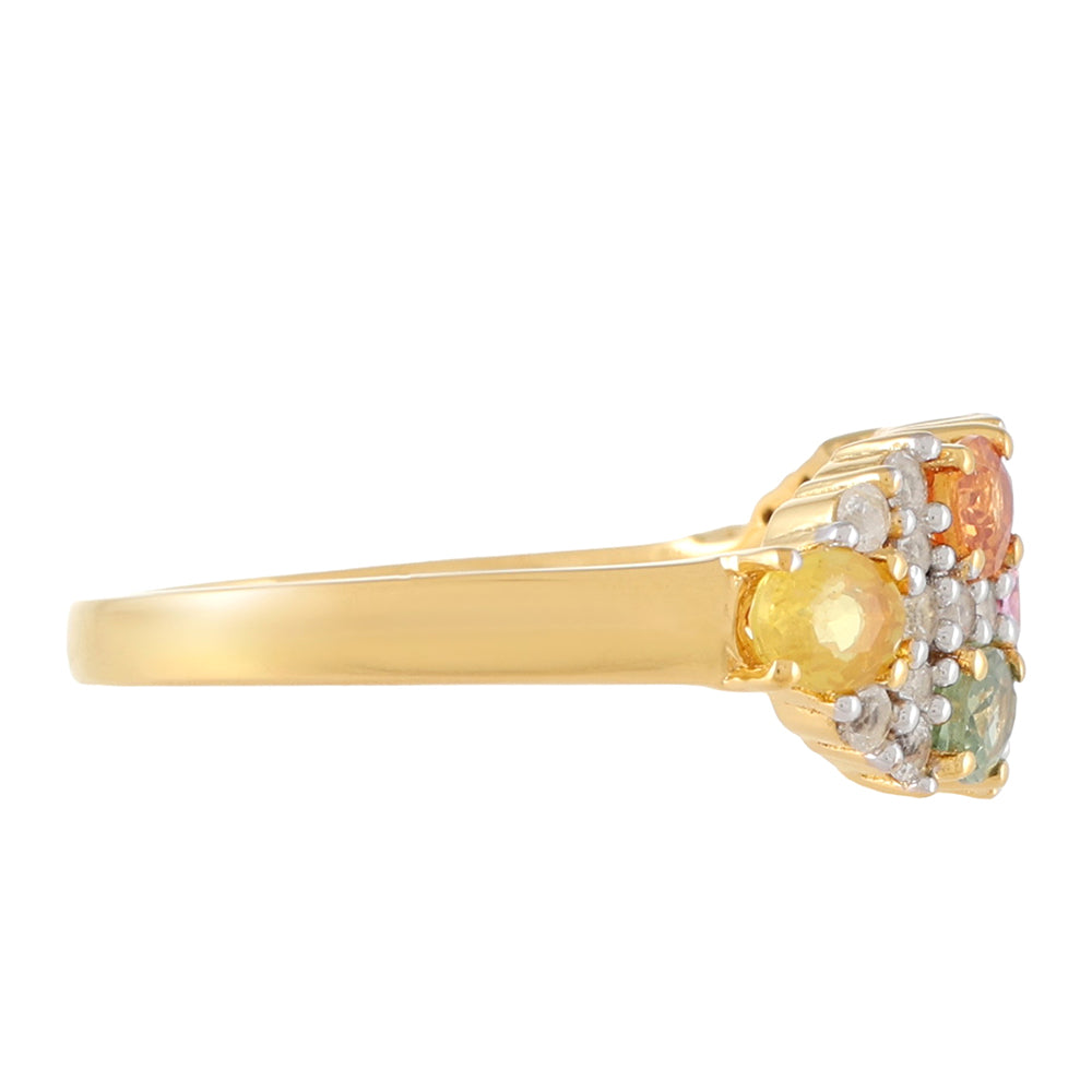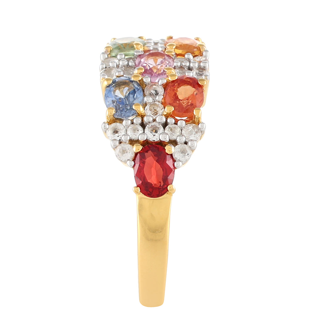 Anel de Prata com Banho de Ouro com Safira Arco-íris e Topázio Branco / carat: 2.17 / peso apróx. 3.49 gr. CÓDIGO: PCY10811 Contraste: Cabeca de Veado (800)