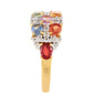 Anel de Prata com Banho de Ouro com Safira Arco-íris e Topázio Branco Contraste: Cabeca de Veado (800)