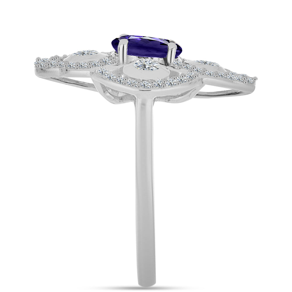 Anel de Prata com Iolite e Topázio Branco / carat: 1.45 / peso apróx. 4.28 gr. CÓDIGO: Y58497 Tamanho da jóia: 22.60 mm x 22.30 mm Contraste: Cabeca de Veado (800)