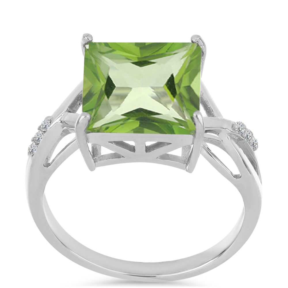 Anel de Prata com Quartzo Verde Samambaia e Topázio Branco