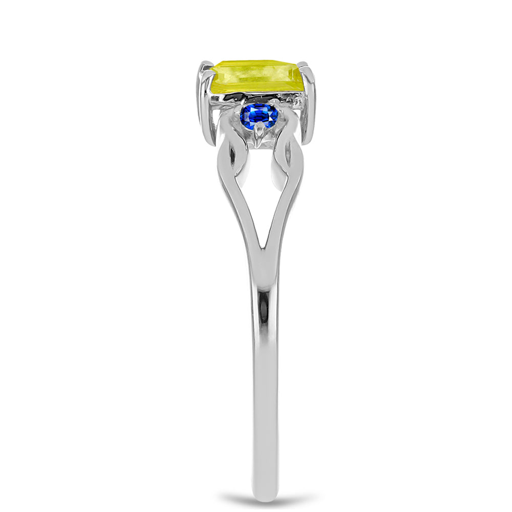 Anel de Prata com Safira Amarelo e Safira Azul Australiana