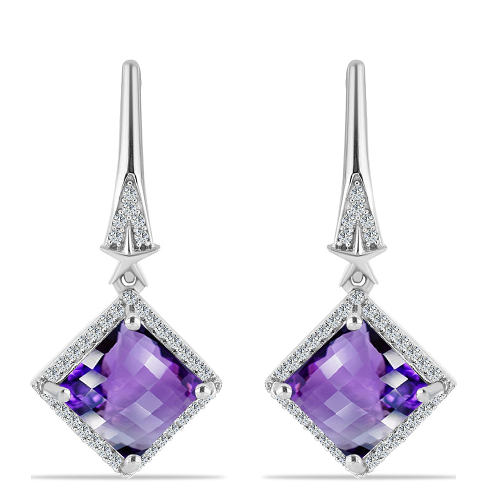 Brincos de Prata com Ametista de Marrocos e Topázio Branco