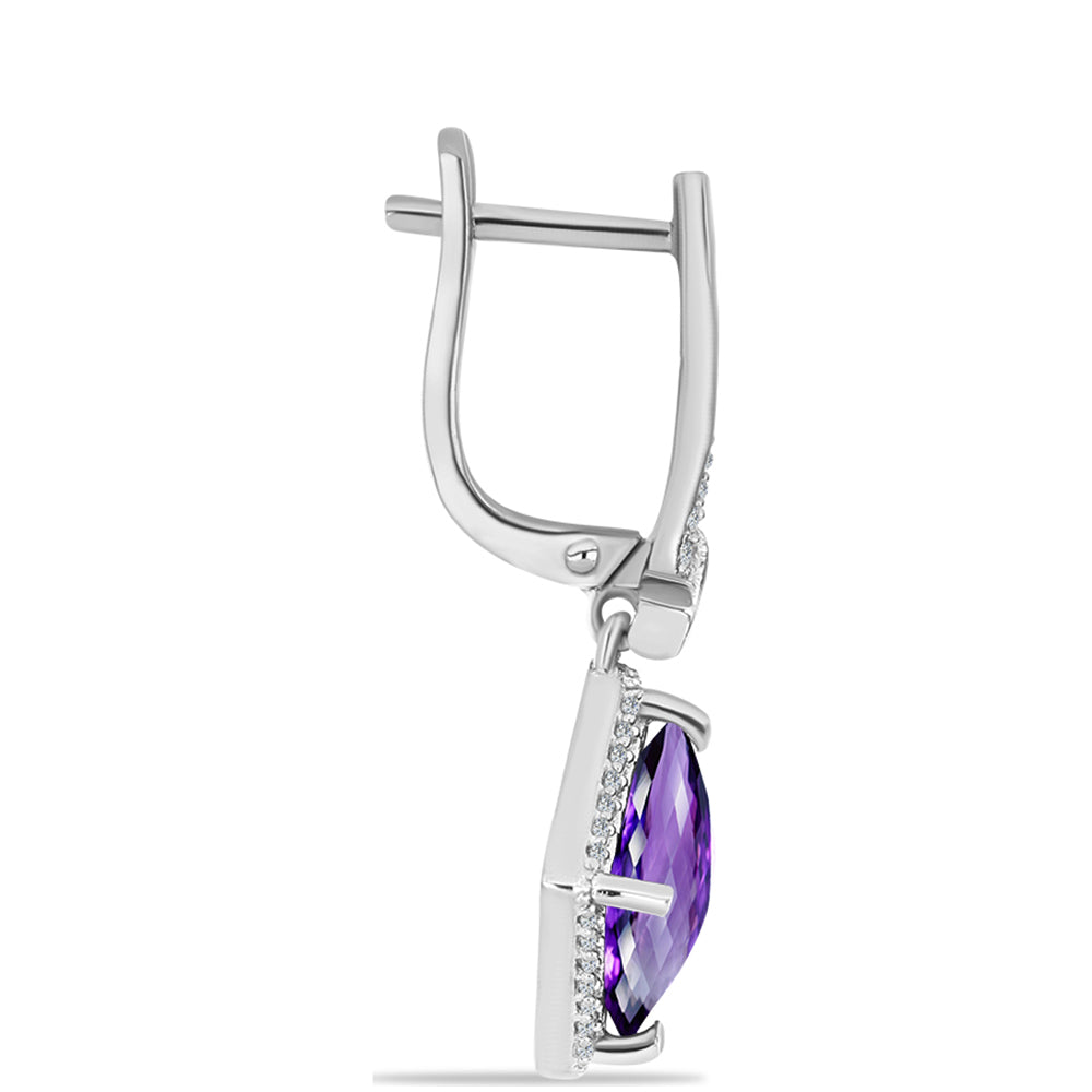Brincos de Prata com Ametista de Marrocos e Topázio Branco / carat: 4.99 / peso apróx. 5.03 gr. CÓDIGO: Y60091 Tamanho da jóia: 31.35 mm x 14.15 mm Fecho do brinco: Brincos com fecho inglês