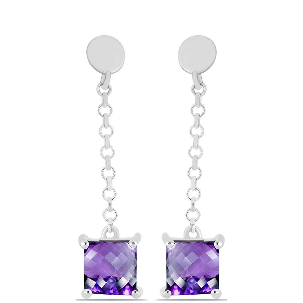 Brincos de Prata com Ametista de Marrocos / carat: 3.13 / peso apróx. 2.76 gr. CÓDIGO: Y60093 Tamanho da jóia: 34.70 mm x 8.20 mm Fecho do brinco: Brincos com fecho com travão