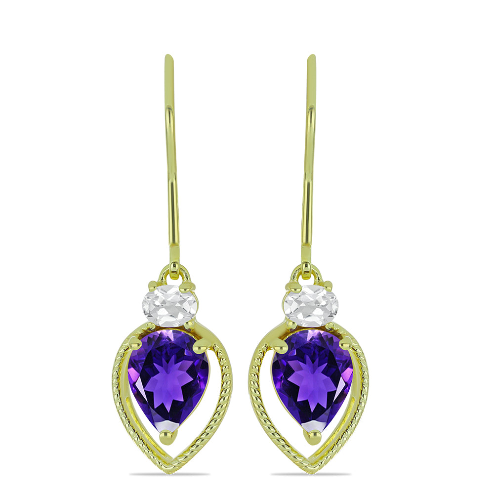 Brincos de Prata com Banho de Ouro com Ametista de Marrocos e Topázio Branco