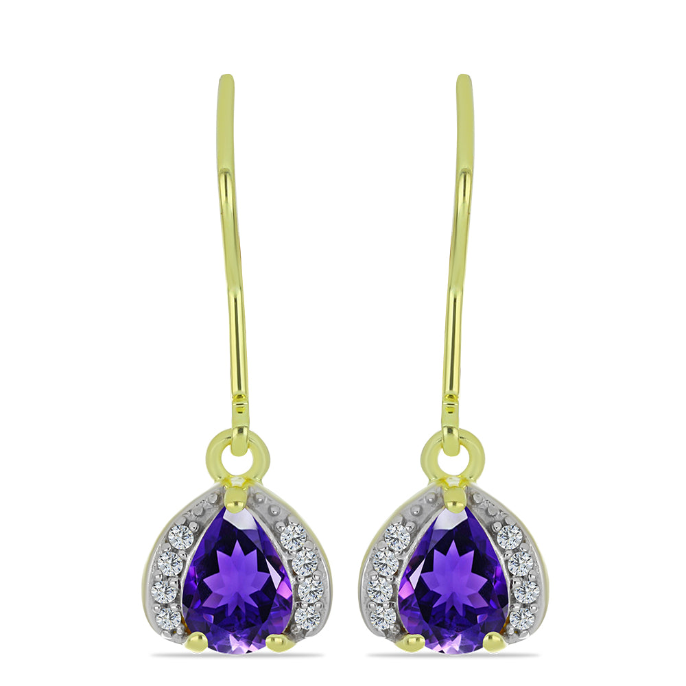 Brincos de Prata com Banho de Ouro com Ametista de Marrocos e Topázio Branco / carat: 1.38 / peso apróx. 2.65 gr. CÓDIGO: Y59262 Tamanho da jóia: 19.10 mm x 9.50 mm Fecho do brinco: Brincos com fecho de alavanca
