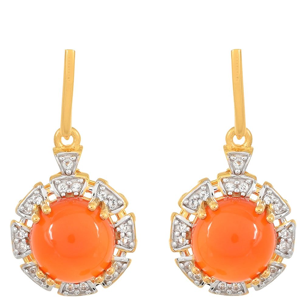 Brincos de Prata com Banho de Ouro com Cornalina e Topázio Branco