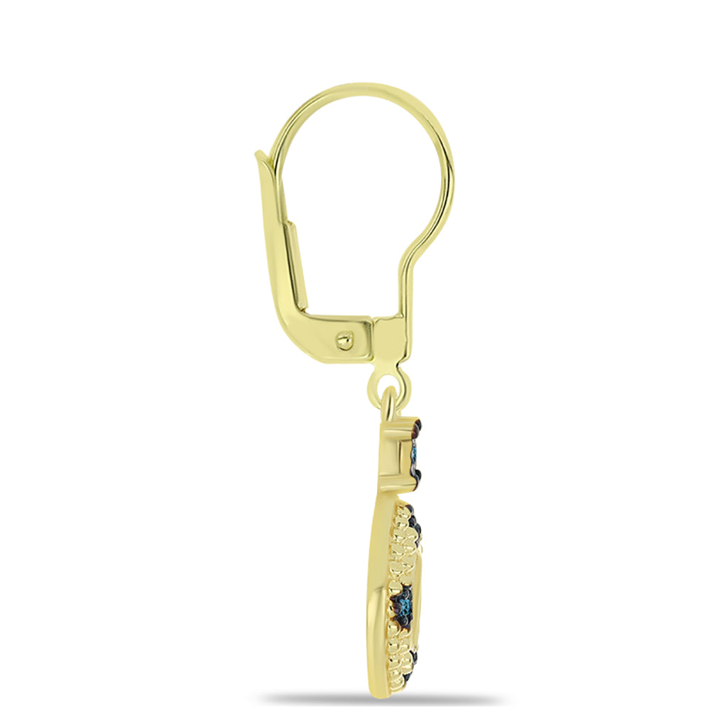 Brincos de Prata com Banho de Ouro com Diamante Azul / carat: 0.08 / peso apróx. 2.85 gr. CÓDIGO: Y58586 Tamanho da jóia: 29.00 mm x 10.80 mm Fecho do brinco: Brincos com fecho de alavanca