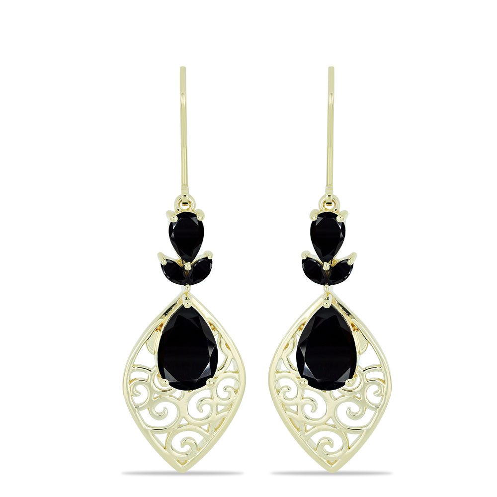 Brincos de Prata com Banho de Ouro com Espinela Preta / carat: 6.21 / peso apróx. 6.21 gr. CÓDIGO: Y59281 Tamanho da jóia: 43 mm x 14.25 mm Fecho do brinco: Brincos com fecho de alavanca