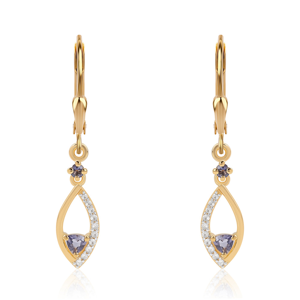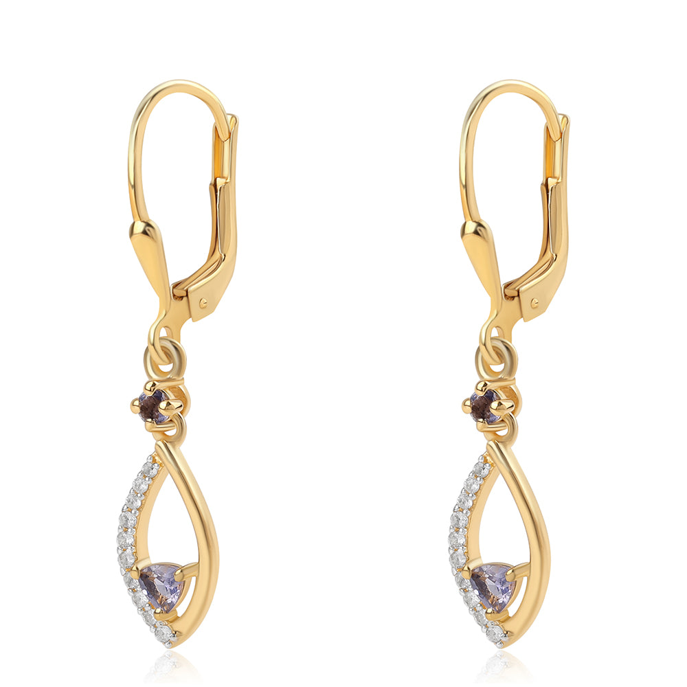 Brincos de Prata com Banho de Ouro com Iolite e Topázio Branco
