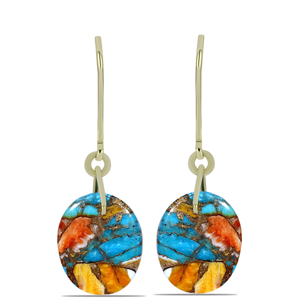 Brincos de Prata com Banho de Ouro com Ostra Turquesa
