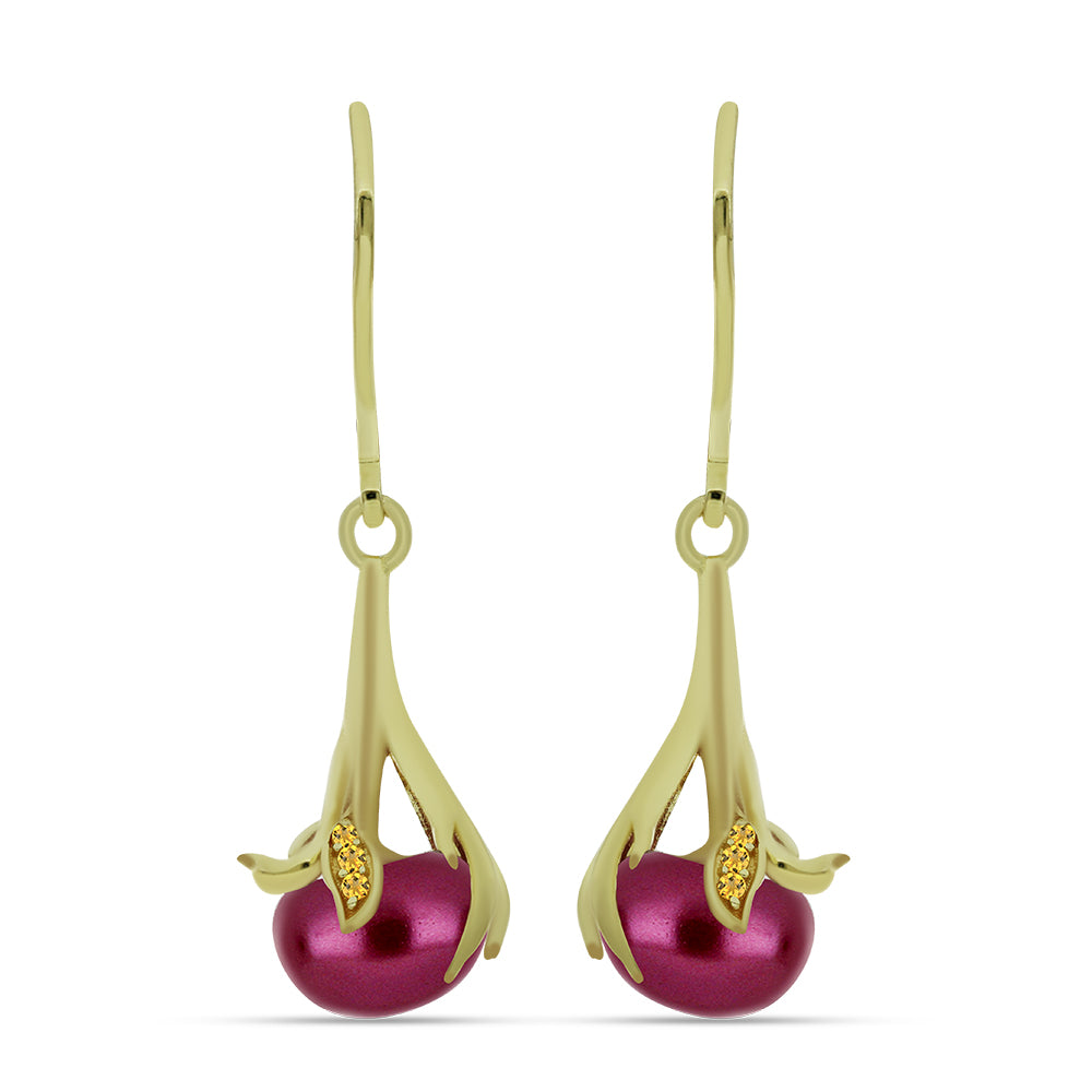 Brincos de Prata com Banho de Ouro com Pérola de Água Doce Roxo e Citrino de Ural