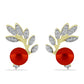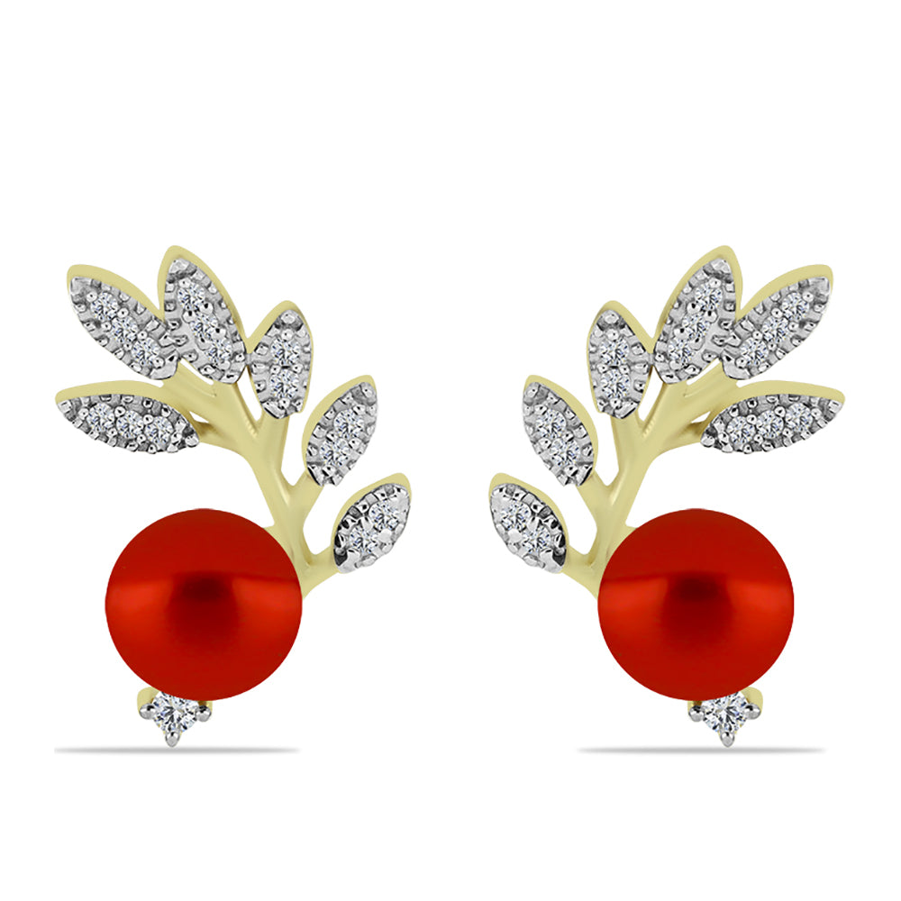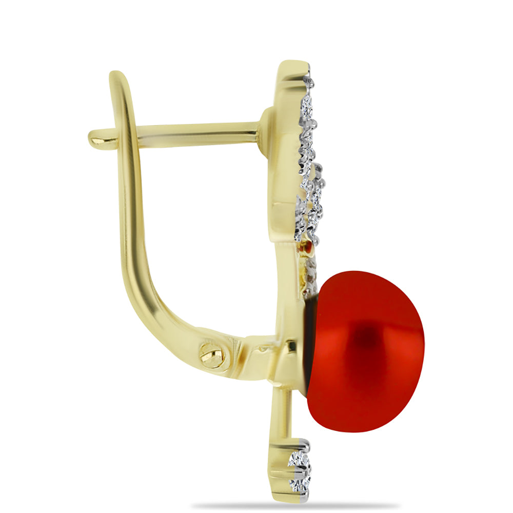 Brincos de Prata com Banho de Ouro com Pérola Vermelha de Água Doce e Topázio Branco