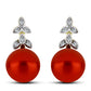 Brincos de Prata com Banho de Ouro com Pérola Vermelha de Água Doce e Topázio Branco