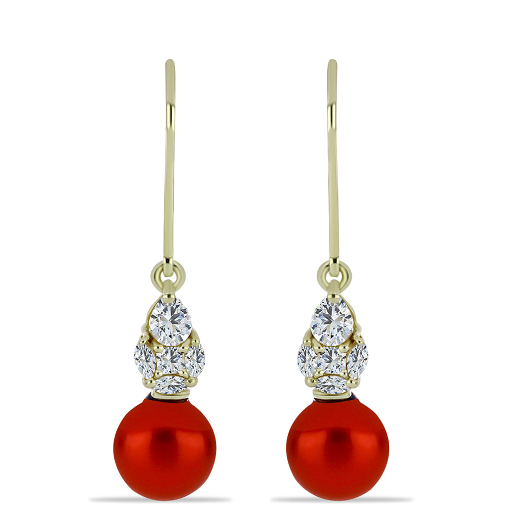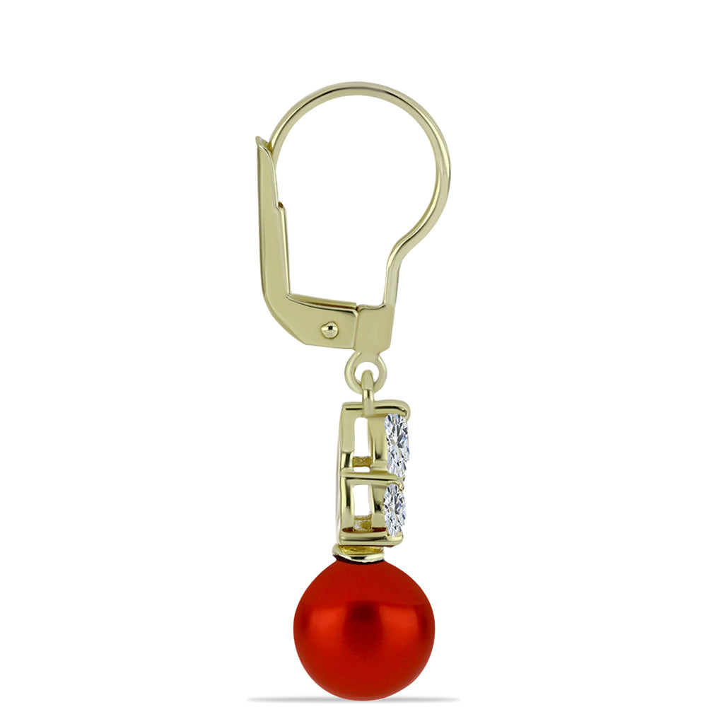 Brincos de Prata com Banho de Ouro com Pérola Vermelha de Água Doce e Topázio Branco