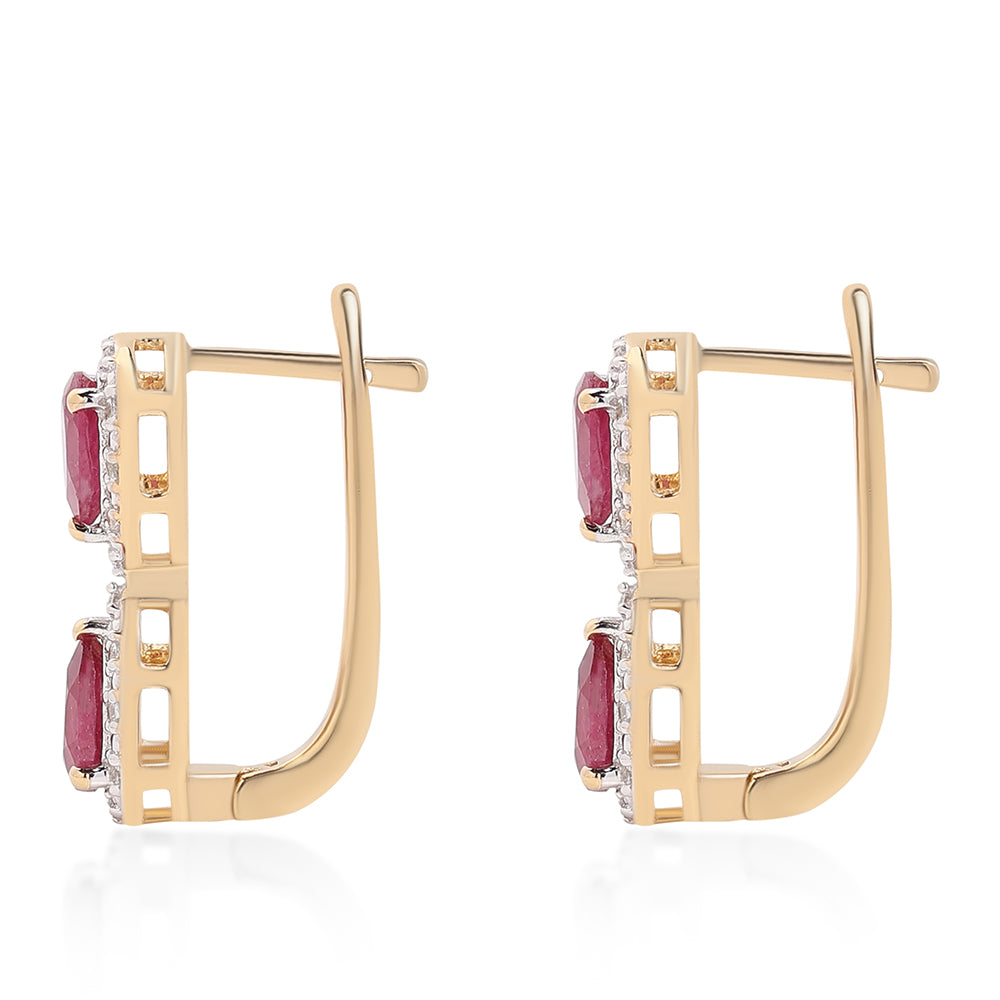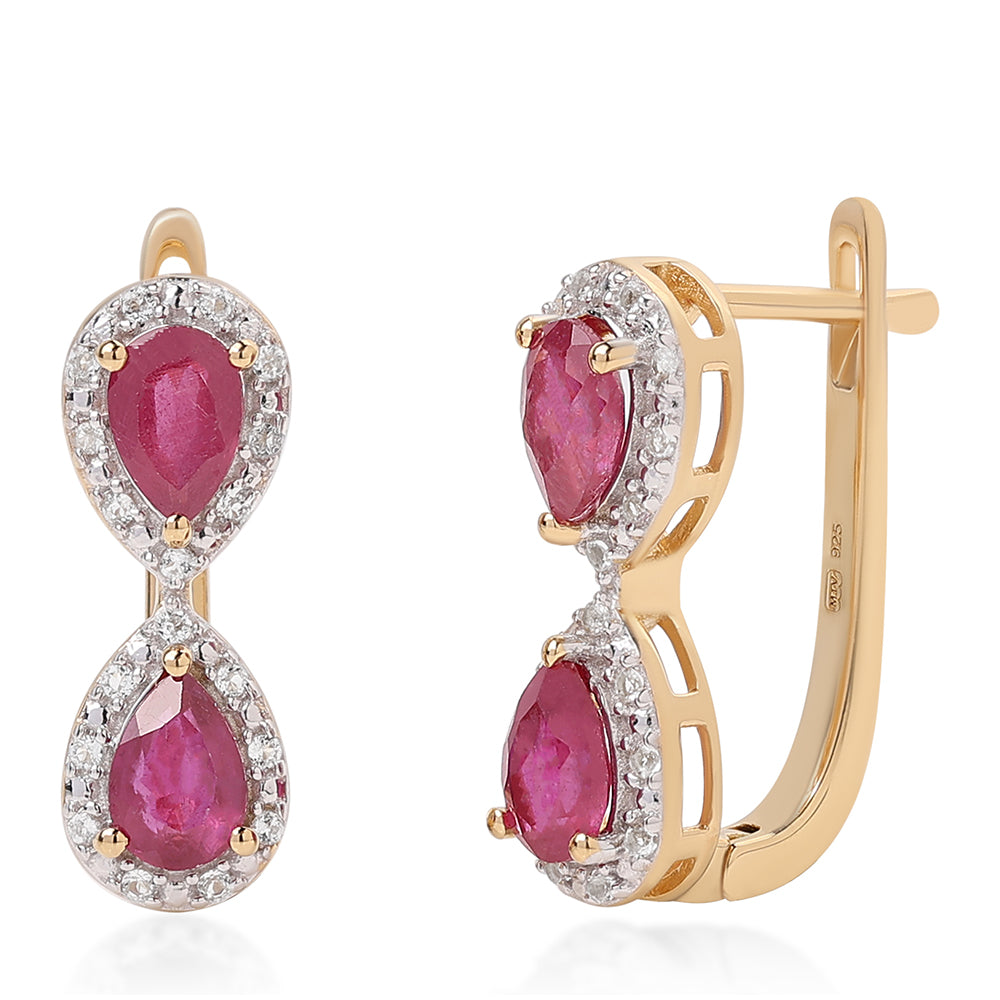 Brincos de Prata com Banho de Ouro com Rubi da Tailândia e Topázio Branco / carat: 2.27 / peso apróx. 3.86 gr. CÓDIGO: ROS136 Tamanho da jóia: 18.60 mm x 6.50 mm Fecho do brinco: Brincos com fecho inglês