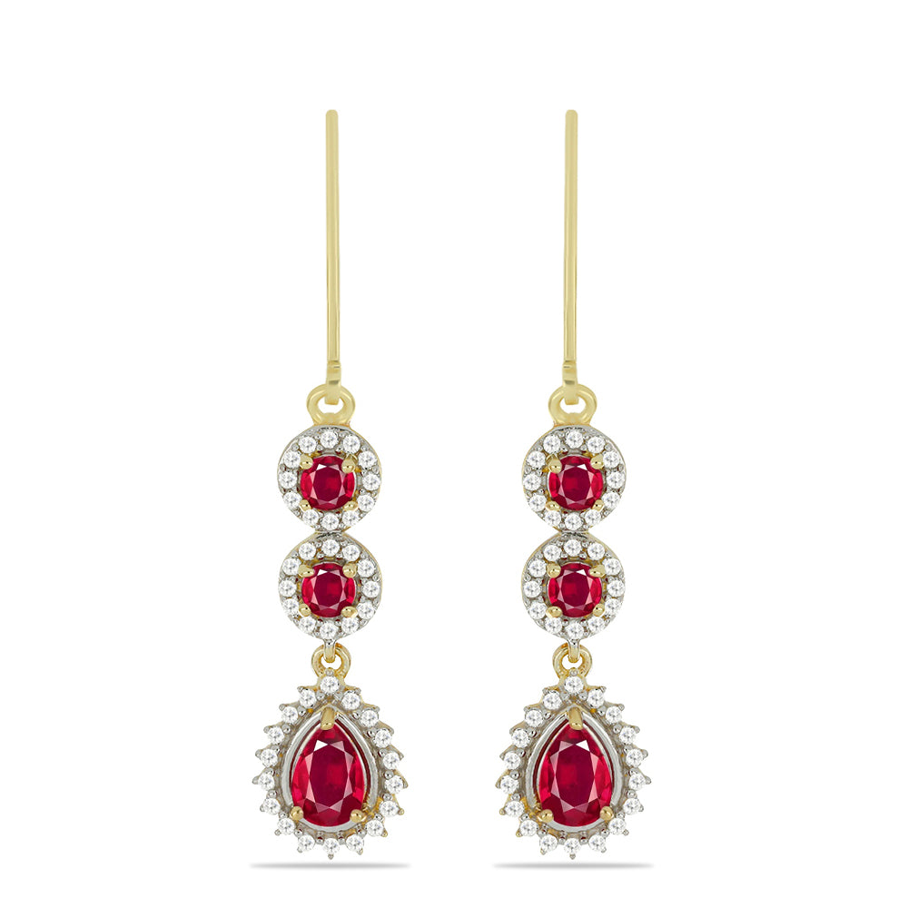 Brincos de Prata com Banho de Ouro com Rubi de Madagáscar e Topázio Branco