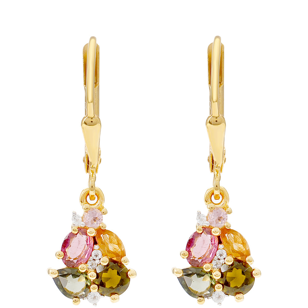 Brincos de Prata com Banho de Ouro com Turmalina Arco-íris de Pelmadulla e Topázio Branco / carat: 1.25 / peso apróx. 2.43 gr. CÓDIGO: PCY11052 Fecho do brinco: Brincos com fecho de alavanca