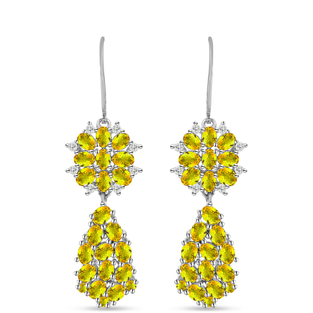 Brincos de Prata com Citrino de Ural e Topázio Branco Contraste: Cabeca de Veado (800)
